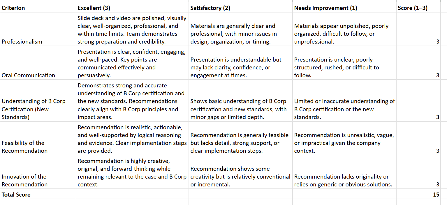 - Global Exposure: Network with students, academics, and industry practitioners from the international B Corp community.