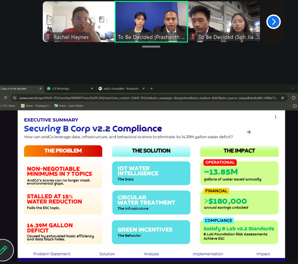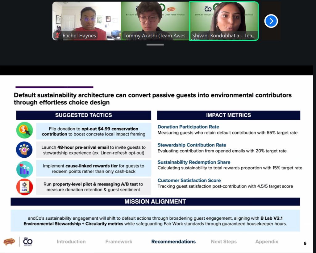 This year’s competition featured a case on AndCo Hospitality, a Florida-based Certified B Corp and industry leader in “responsible tourism”. Students were tasked with acting as consultants to help the company navigate real challenges the company is currently facing.